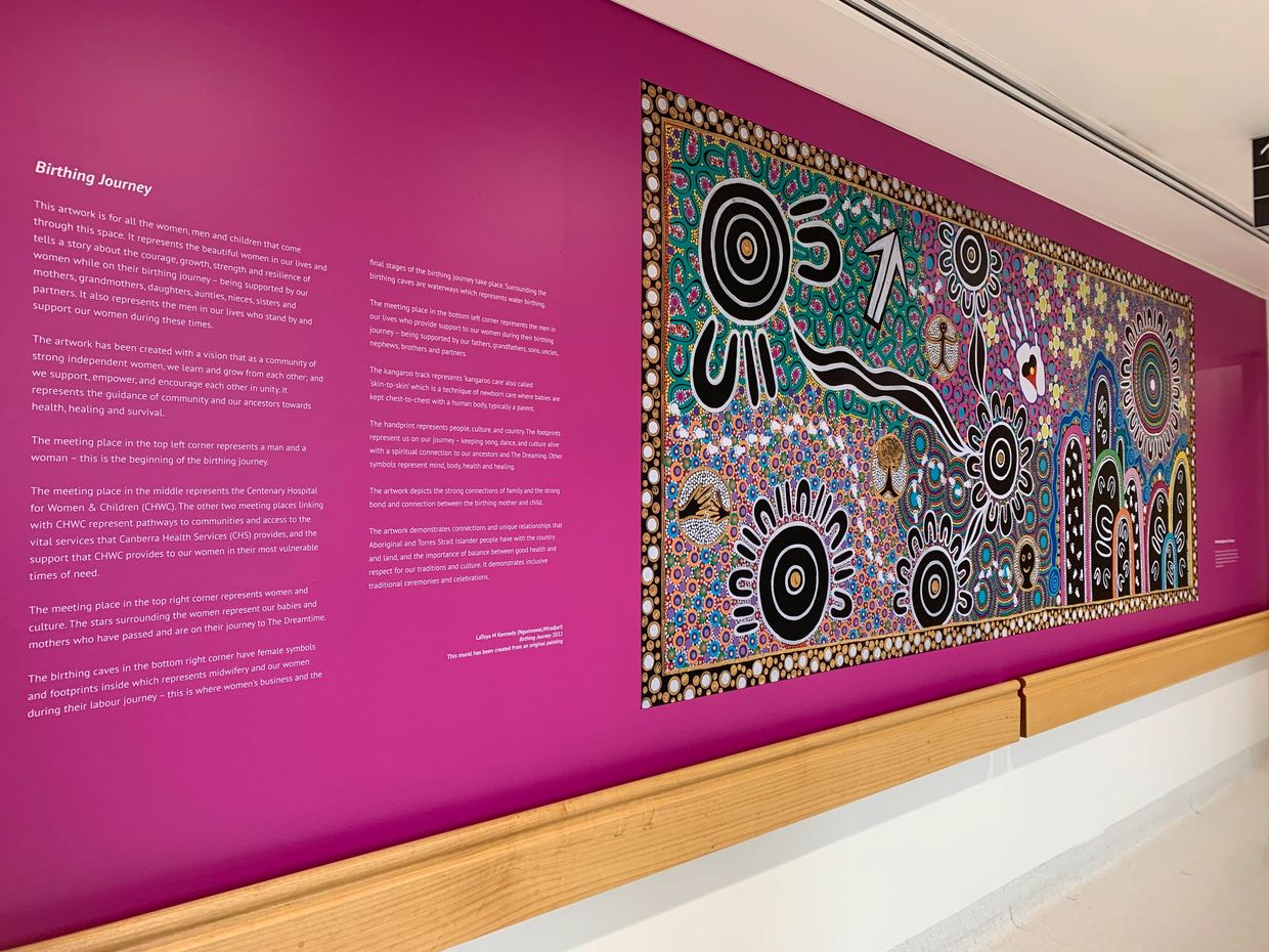 Centenary Hospital for Women & Children, The Canberra Hospital - canvas painting created and converted into a vinyl wrap covering the hallway to the entrance of the Maternity Unit